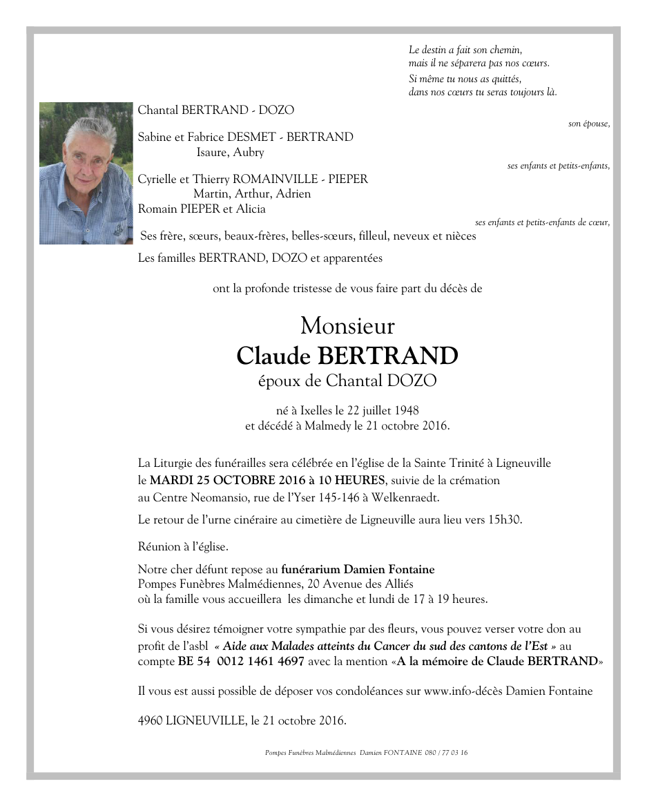 Monsieur Claude BERTRAND époux de Chantal DOZO