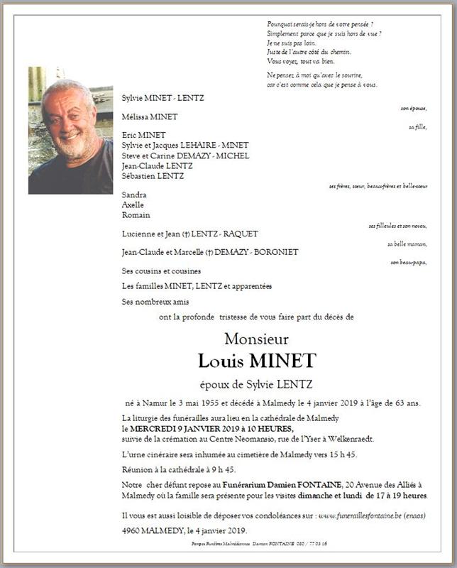 Décédé à Malmedy (4960) le vendredi 4 janvier 2019 à l'âge de 63 ans