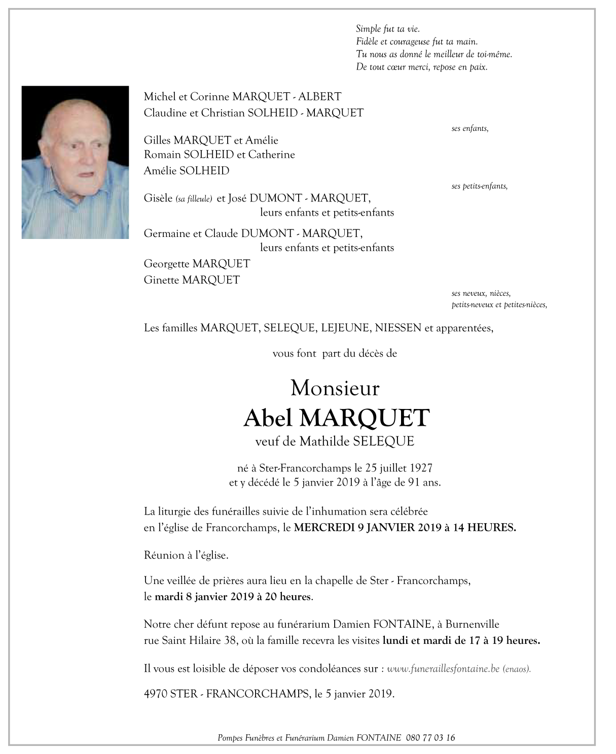 Monsieur Abel MARQUET veuf de Mathilde SELEQUE