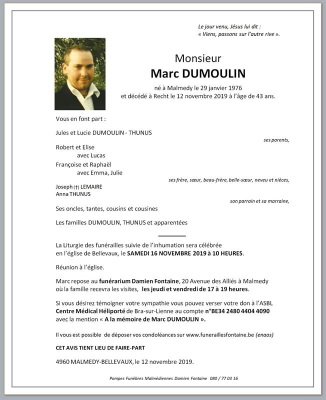 Décédé à Recht (4780) le mardi 12 novembre 2019 à l'âge de 43 ans