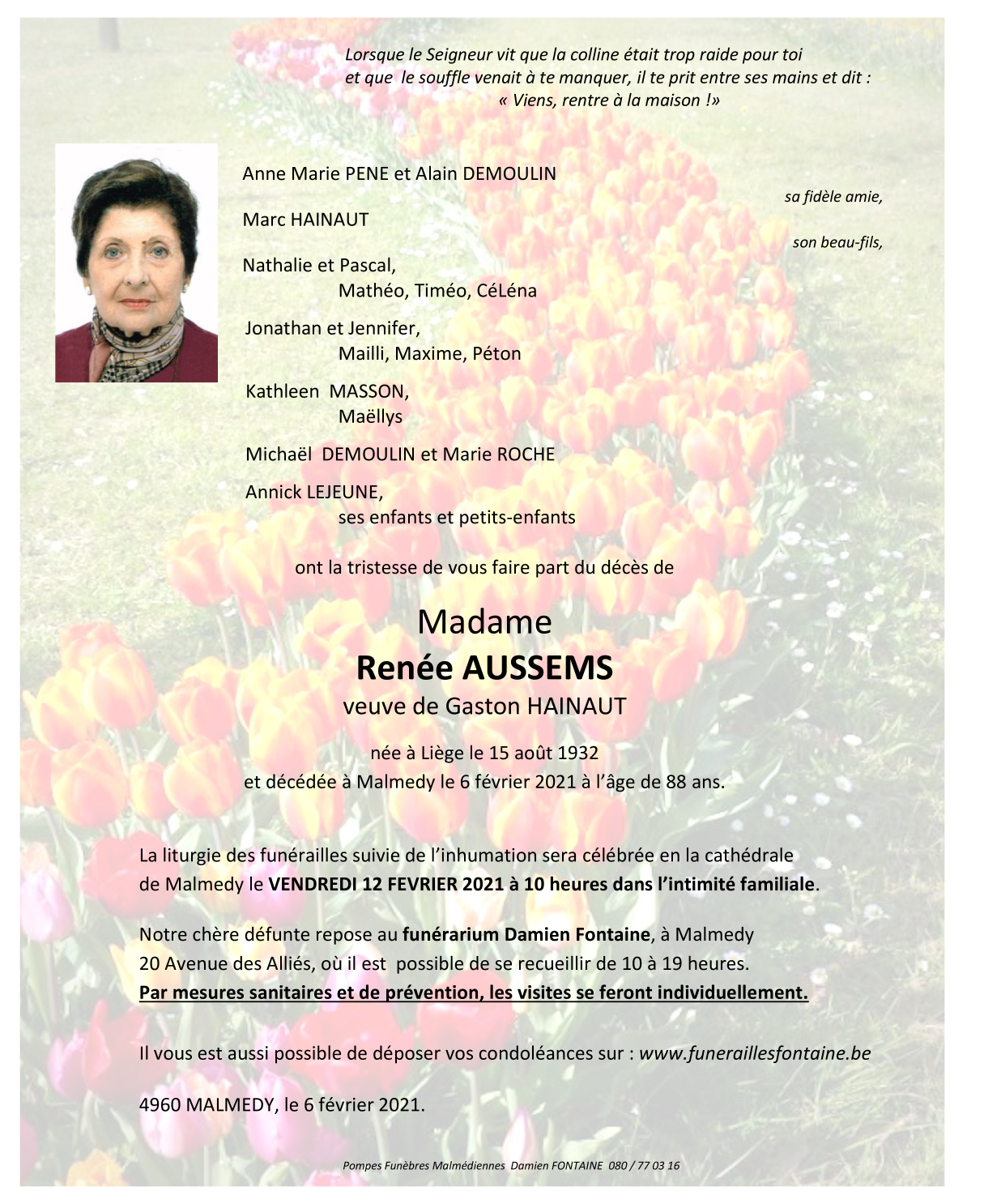 Madame Renée AUSSEMS veuve de Gaston HAINAUT