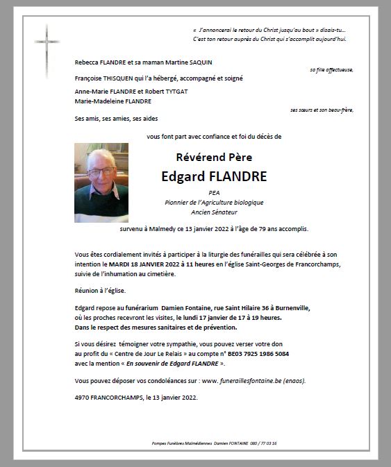 Décédé à Malmedy (4960) le jeudi 13 janvier 2022 à l'âge de 79 ans