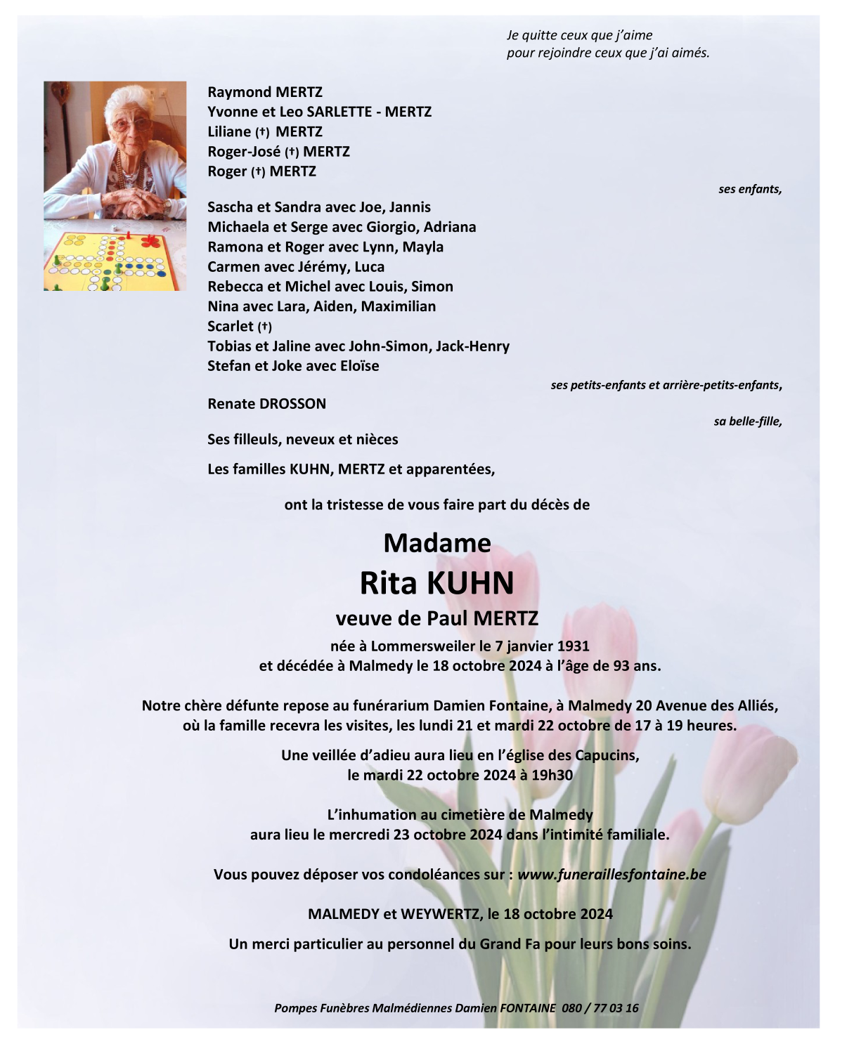 Madame Rita KUHN veuve de Paul MERTZ