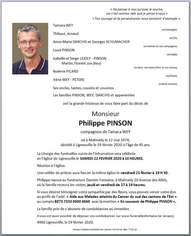 Décédé à Ligneuville (4960) le mercredi 19 février 2020 à l'âge de 45 ans