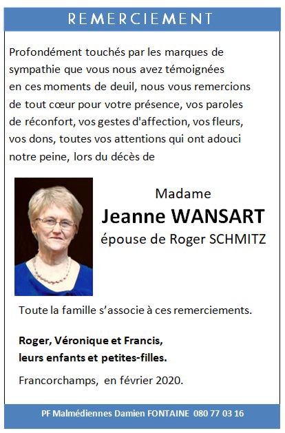Madame Jeanne WANSART épouse de Roger SCHMITZ