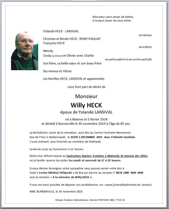 Décédé à Burnenville (4960) le samedi 30 novembre 2019 à l'âge de 85 ans