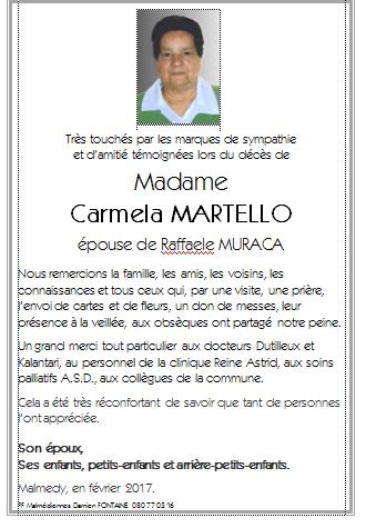 Madame Carmela MARTELLO épouse de Raffaele MURACA