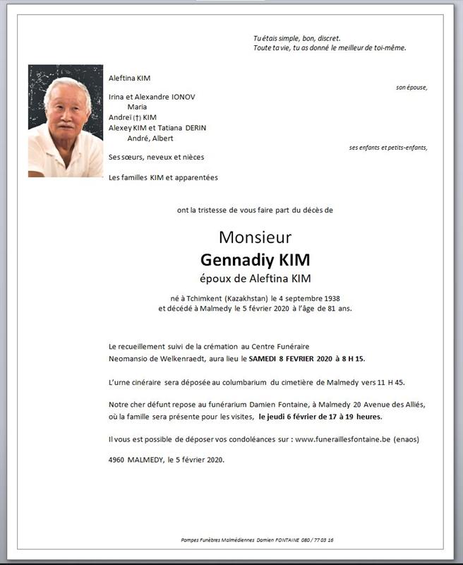 Epoux de Madame Aleftina KIM