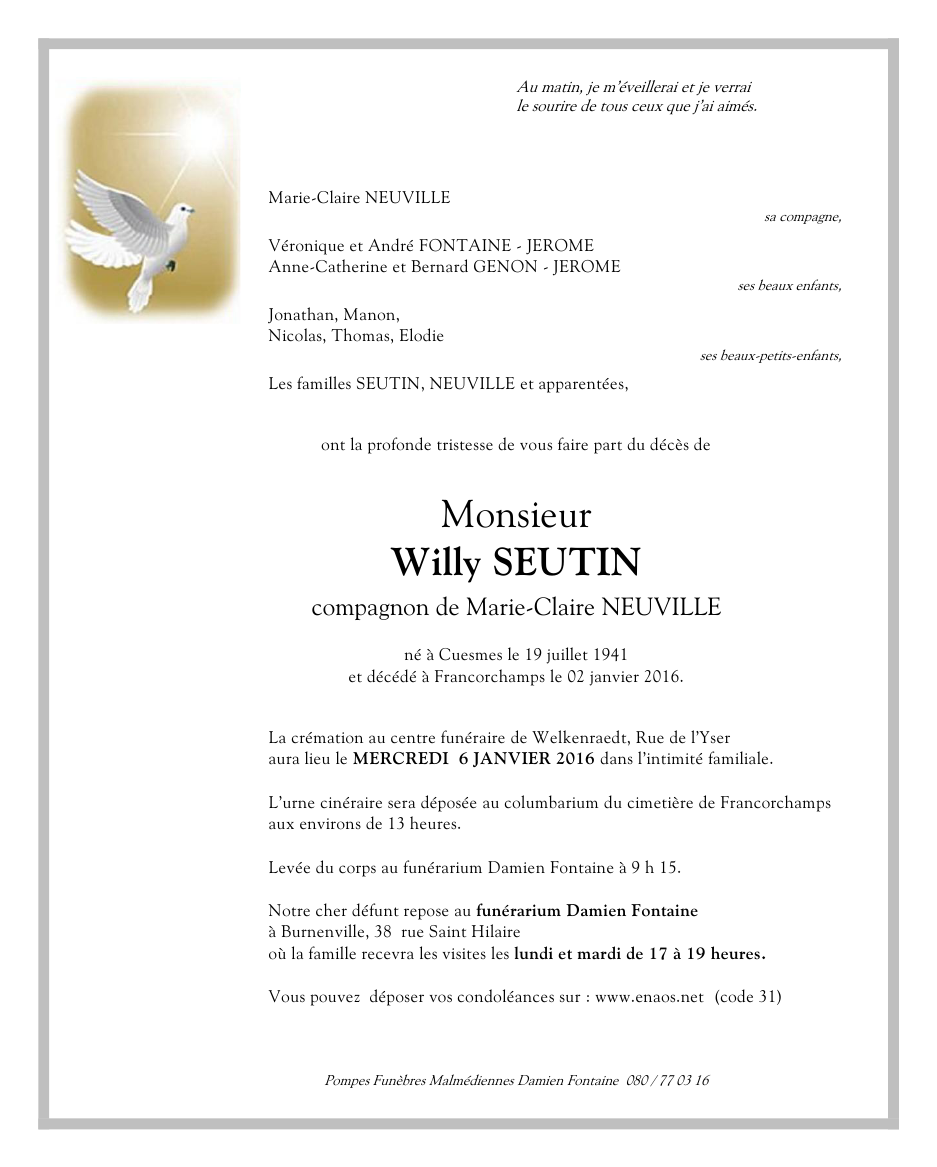 Décédé à Francorchamps (4970) le samedi 2 janvier 2016 à l'âge de 74 ans