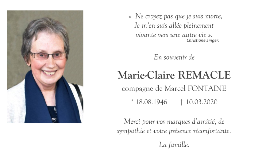 Décédée à Francorchamps (4970) le mardi 10 mars 2020 à l'âge de 73 ans