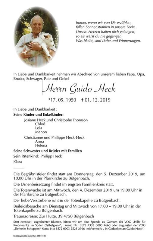 Décédé à Bütgenbach (4750) le dimanche 1 décembre 2019 à l'âge de 69 ans