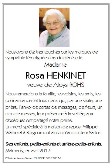 Décédée à Borgoumont (4987) le jeudi 13 avril 2017 à l'âge de 86 ans