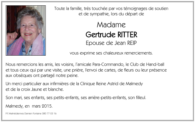 Décédé à Malmedy (4960) le vendredi 20 mars 2015 à l'âge de 84 ans