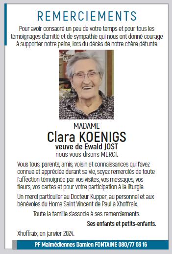 Décédée à Xhoffraix (4960) le vendredi 12 janvier 2024 à l'âge de 91 ans