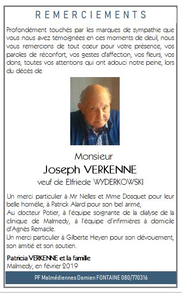Décédé à Malmedy (4960) le mercredi 6 février 2019 à l'âge de 89 ans