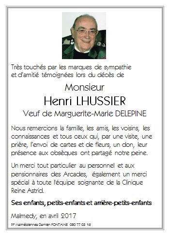 Décédé à Malmedy (4960) le jeudi 13 avril 2017 à l'âge de 93 ans