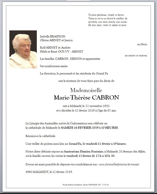 Mademoiselle Marie-Thérèse CABRON