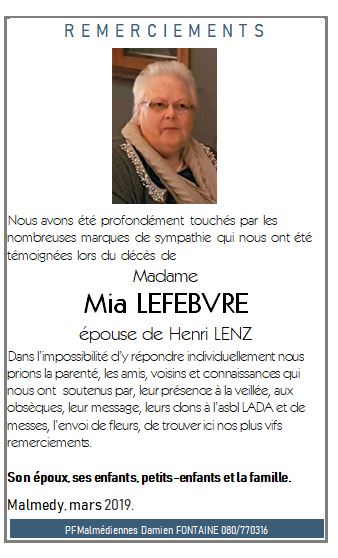 Madame Maria LEFEBVRE dite Mia