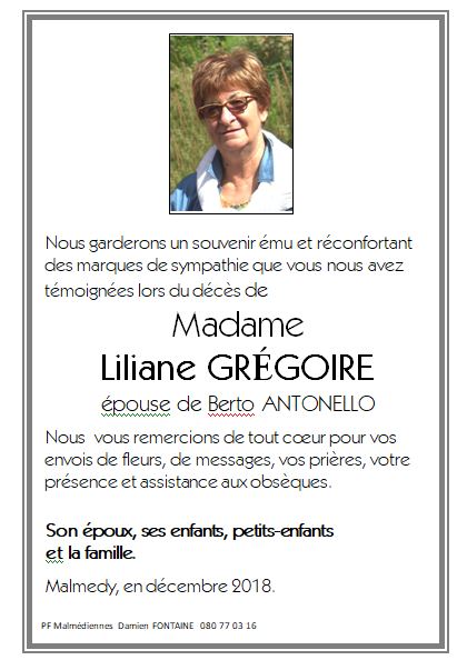 Madame Liliane GREGOIRE épouse de Berto ANTONELLO