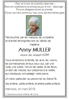 Madame Anne (Anny) MULLER Vve de Joseph KOPP