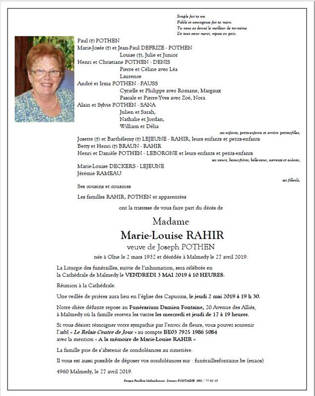 Madame Marie-Louise RAHIR veuve de Joseph POTHEN