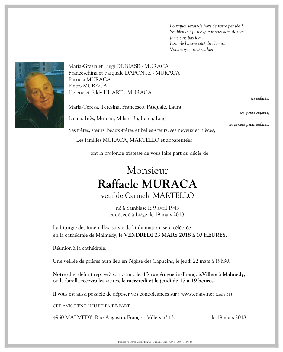 Décédé à Liège (4000) le lundi 19 mars 2018 à l'âge de 74 ans