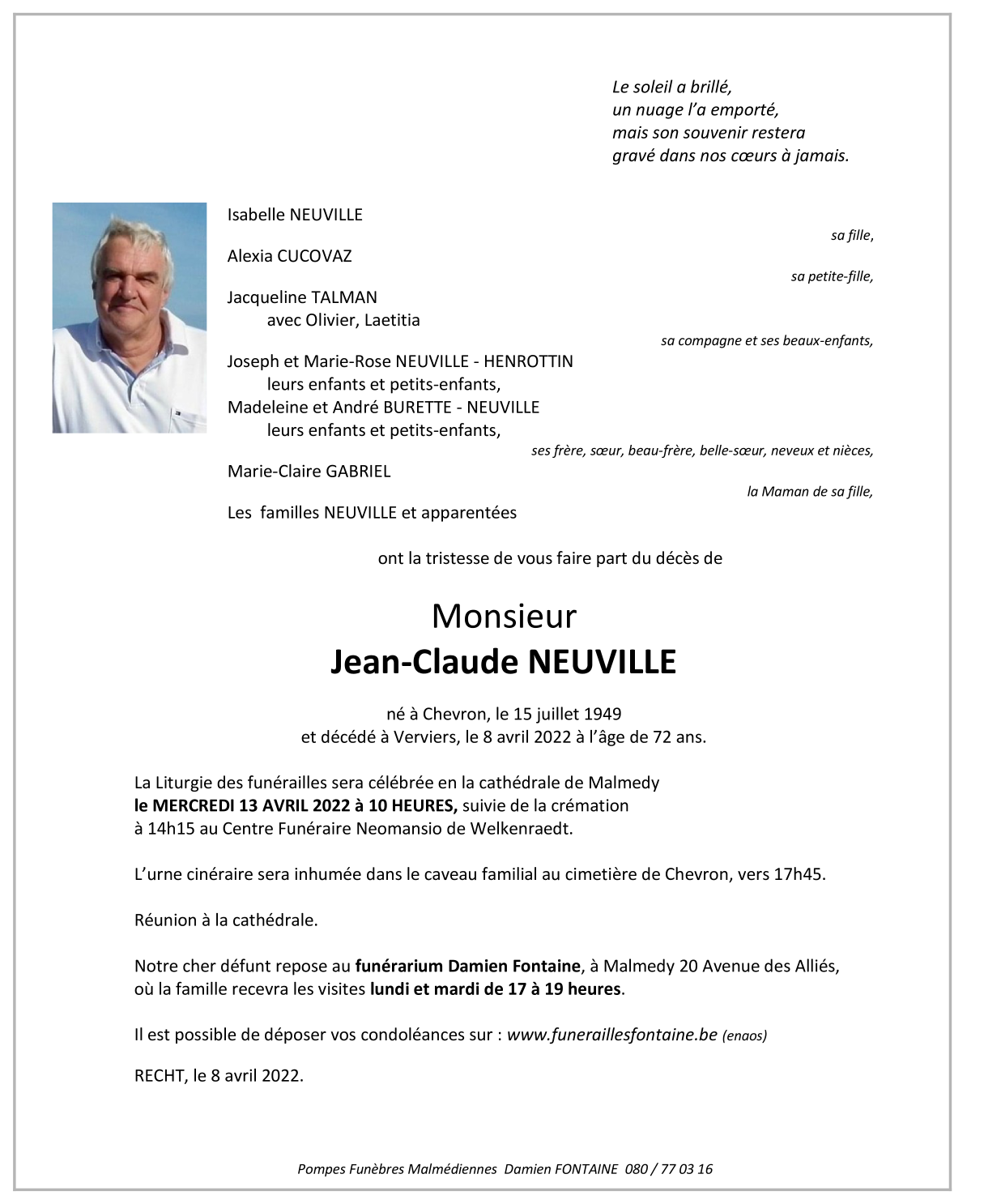 Décédé à Verviers (4800) le vendredi 8 avril 2022 à l'âge de 72 ans