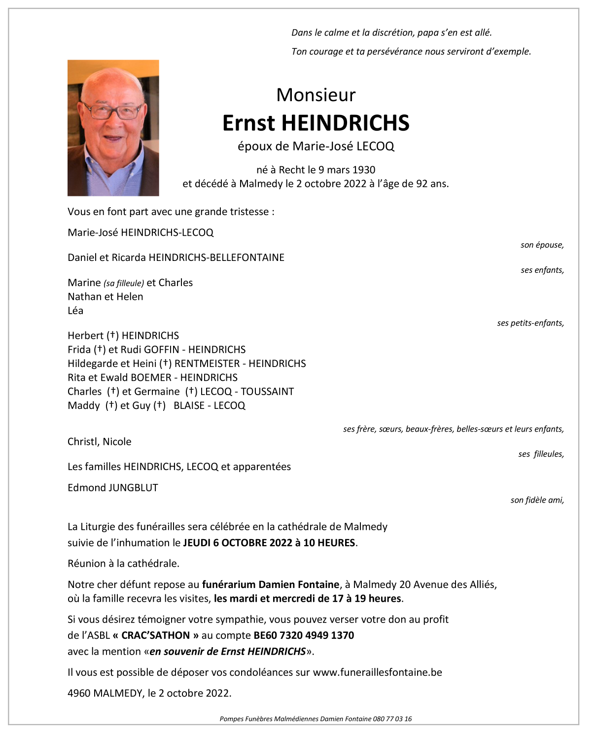 Décédé à Malmedy (4960) le dimanche 2 octobre 2022 à l'âge de 92 ans