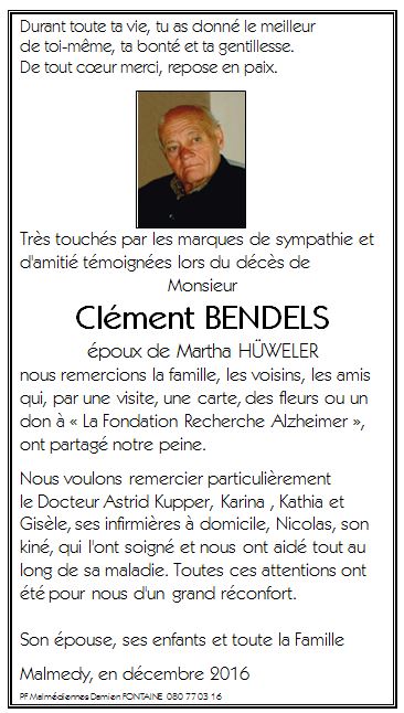 Décédé à Malmedy (4960) le lundi 5 décembre 2016 à l'âge de 83 ans