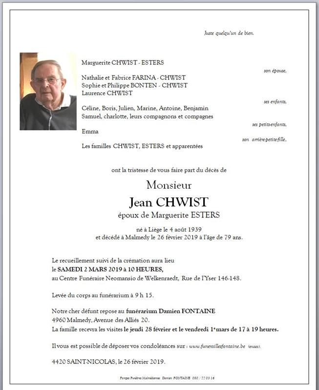 Décédé à Malmedy (4960) le mardi 26 février 2019 à l'âge de 79 ans