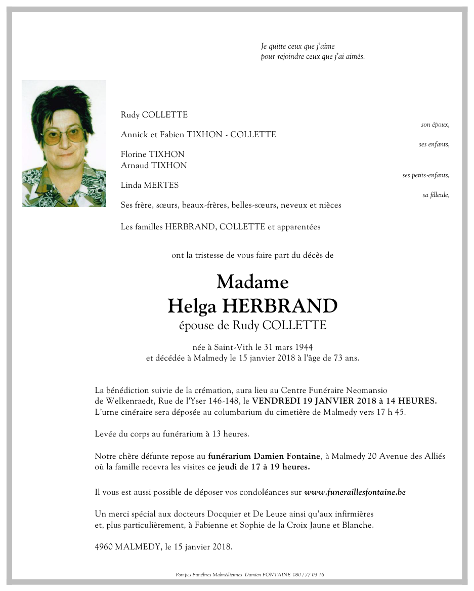 Madame Helga HERBRAND épouse de Rudy COLLETTE