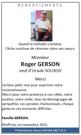 Décédé à Malmedy (4960) le mardi 30 novembre 2021 à l'âge de 88 ans