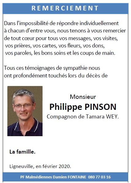 Décédé à Ligneuville (4960) le mercredi 19 février 2020 à l'âge de 45 ans