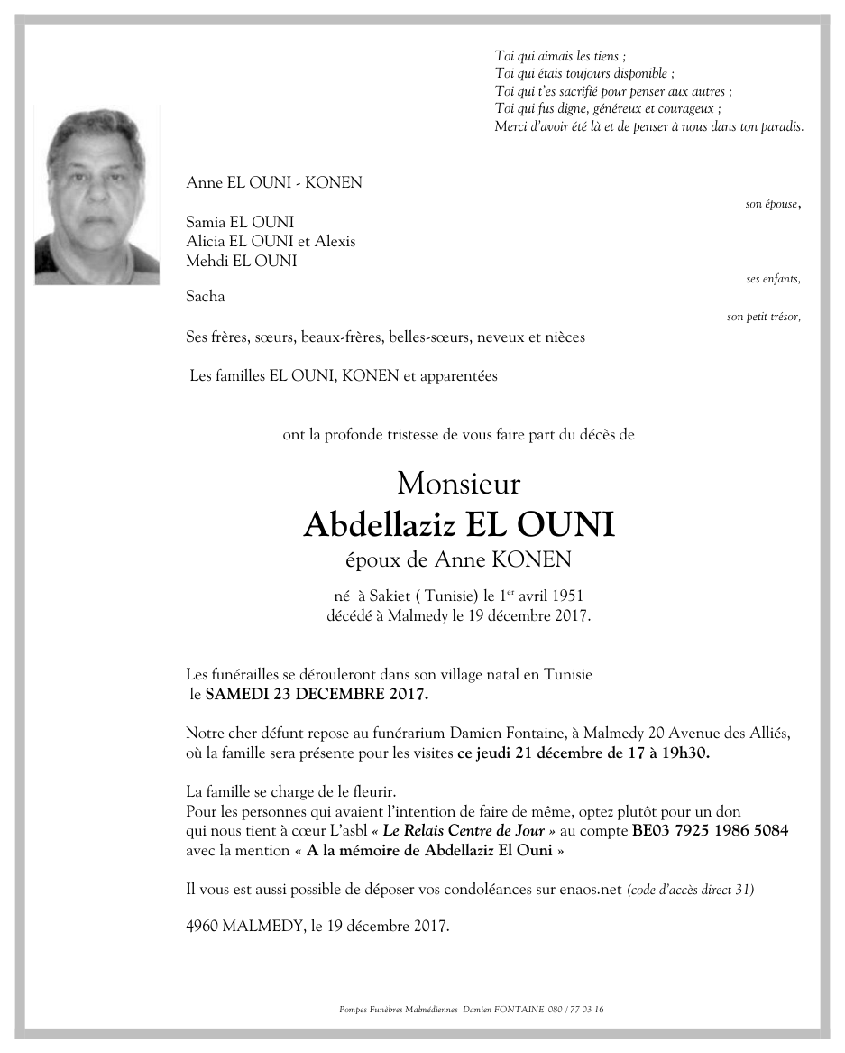 Monsieur Abdellaziz EL OUNI époux de Anne KONEN