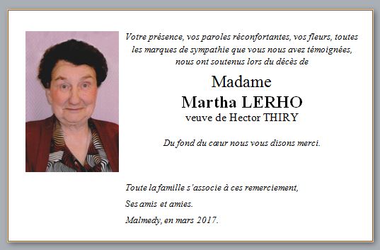 Madame Martha LERHO veuve de Hector THIRY
